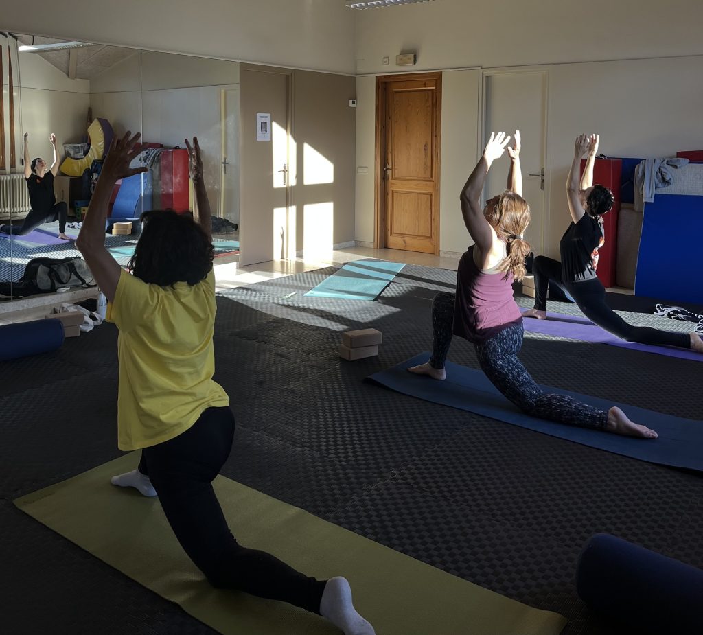 - Materiales: esterillas, bloques, correas, bolsters y mantas