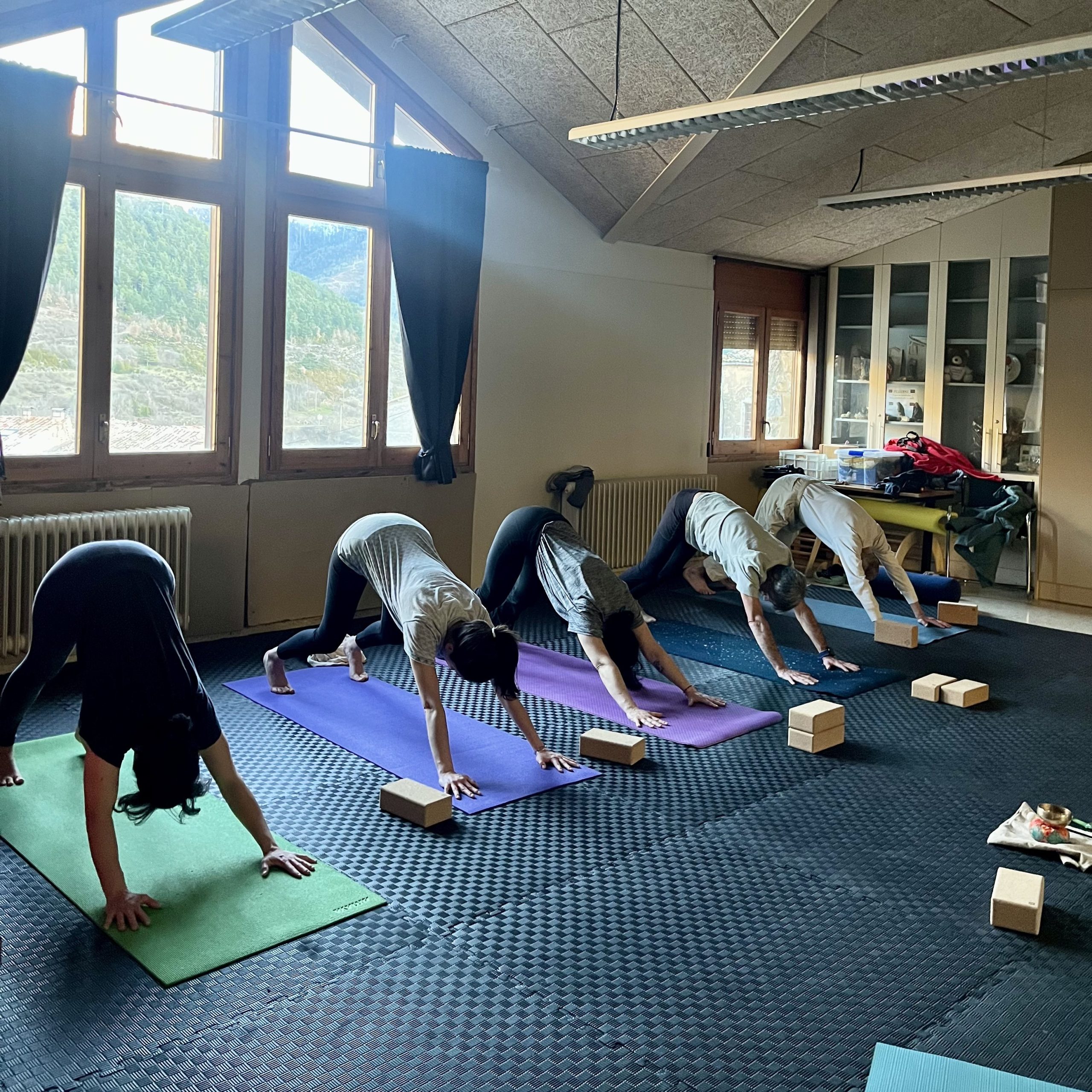- Materiales: esterillas, bloques, correas, bolsters y mantas